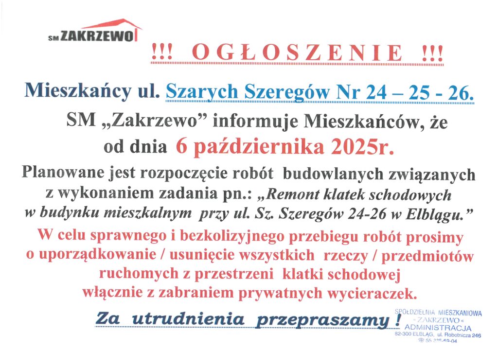 Administratorem danych osobowych jest Spółdzielnia Mieszkaniowa „Zakrzewo” w Elblągu, z siedzibą przy ulicy Robotniczej 246, 82-300 Elbląg, tel. 55 235 69 02 – reprezentowaną przez Zarząd Spółdzielni.
