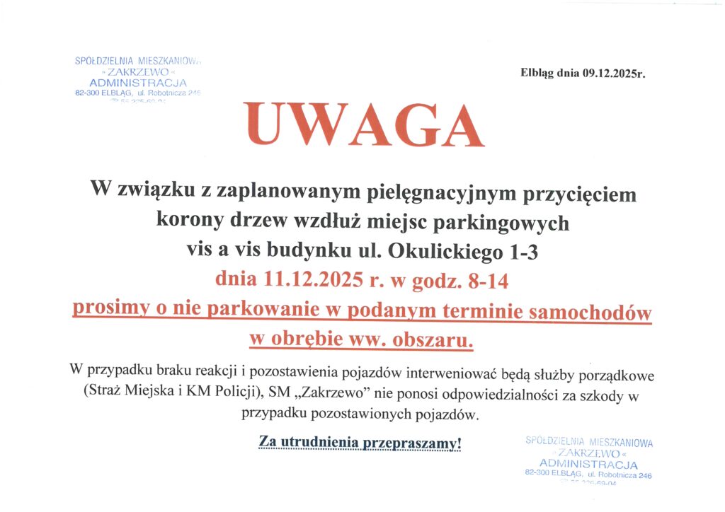 Administratorem danych osobowych jest Spółdzielnia Mieszkaniowa „Zakrzewo” w Elblągu, z  siedzibą przy ulicy Robotniczej 246, 82-300 Elbląg, tel. 55 235 69 02 – reprezentowaną przez Zarząd Spółdzielni.