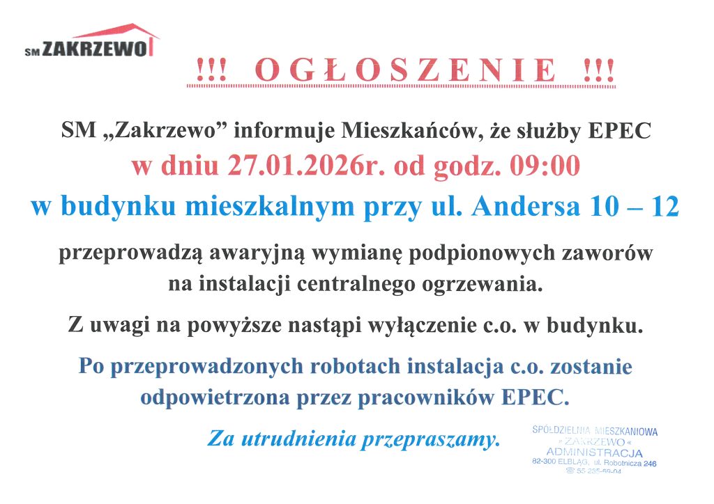 Administratorem danych osobowych jest Spółdzielnia Mieszkaniowa „Zakrzewo” w Elblągu, z  siedzibą przy ulicy Robotniczej 246, 82-300 Elbląg, tel. 55 235 69 02 – reprezentowaną przez Zarząd Spółdzielni.