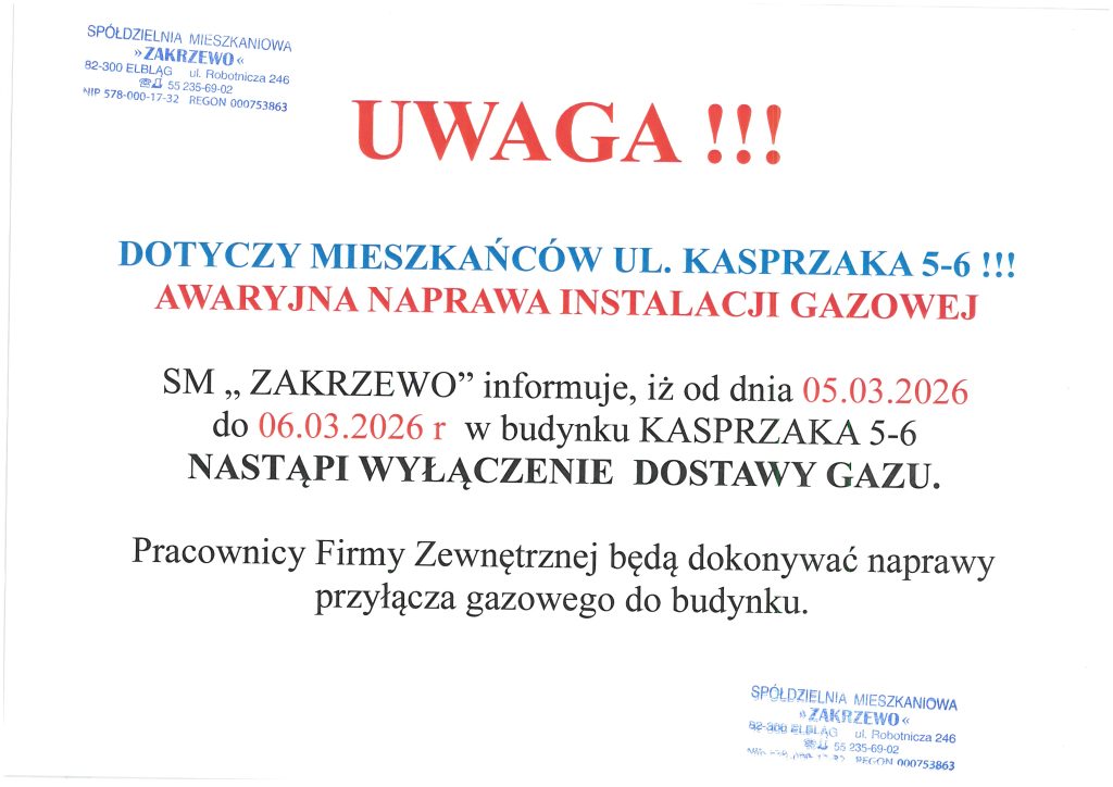 Administratorem danych osobowych jest Spółdzielnia Mieszkaniowa „Zakrzewo” w Elblągu, z  siedzibą przy ulicy Robotniczej 246, 82-300 Elbląg, tel. 55 235 69 02 – reprezentowaną przez Zarząd Spółdzielni.